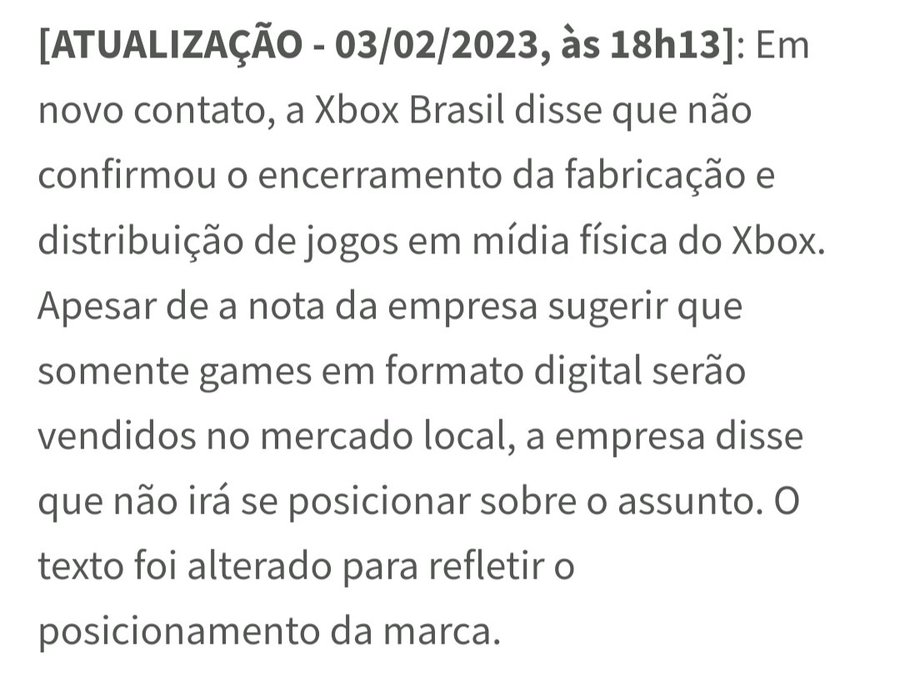 Enquanto a Microsoft ainda não se pronunciou sobre o assunto, é importante lembrar que esse é apenas um rumor e que a situação pode mudar. Até que a empresa confirme oficialmente qualquer mudança na forma de venda dos jogos do Xbox no Brasil, ainda é possível adquirir mídias físicas dos jogos.